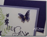 In this first card, I adhered the DSP to the Whisper White card base and then inlay embossed using the Big Shot and the Square Lattice Textures Embossing Folder. The is actually the first time I’ve given this technique a try. I like it. I just don’t care for how ‘flimsy’ the embossing makes the Whisper White card front. In case you don’t know, it does that only because, when you emboss, it breaks down the fibers of the card stock. Next time, I will layer it onto a card base instead of it being the card base. The image stamp is from Just Believe and the sentiment is from Word Play. I love both these sets!